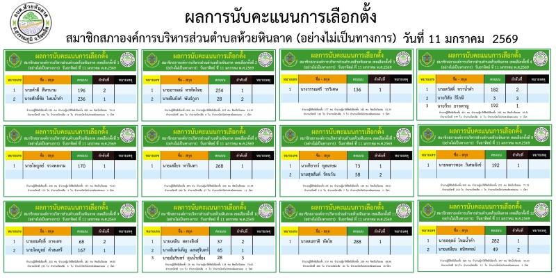 หัวข้อ :: รายงานผลการนับคะแนนเลือกตั้ง สมาชิกสภาองค์การบริหารส่วนตำบลห้วยหินลาด แบบไม่เป็นทางการ